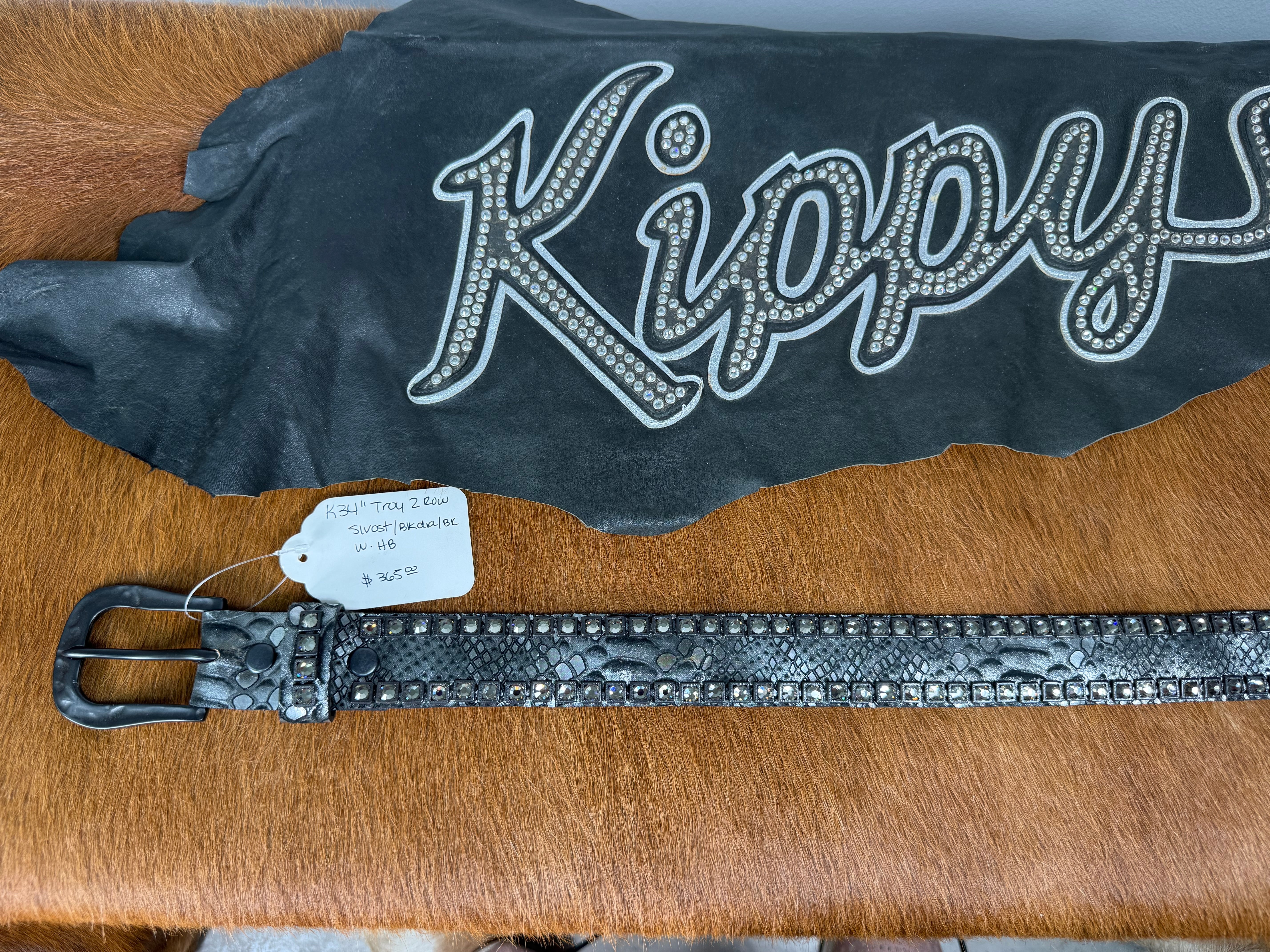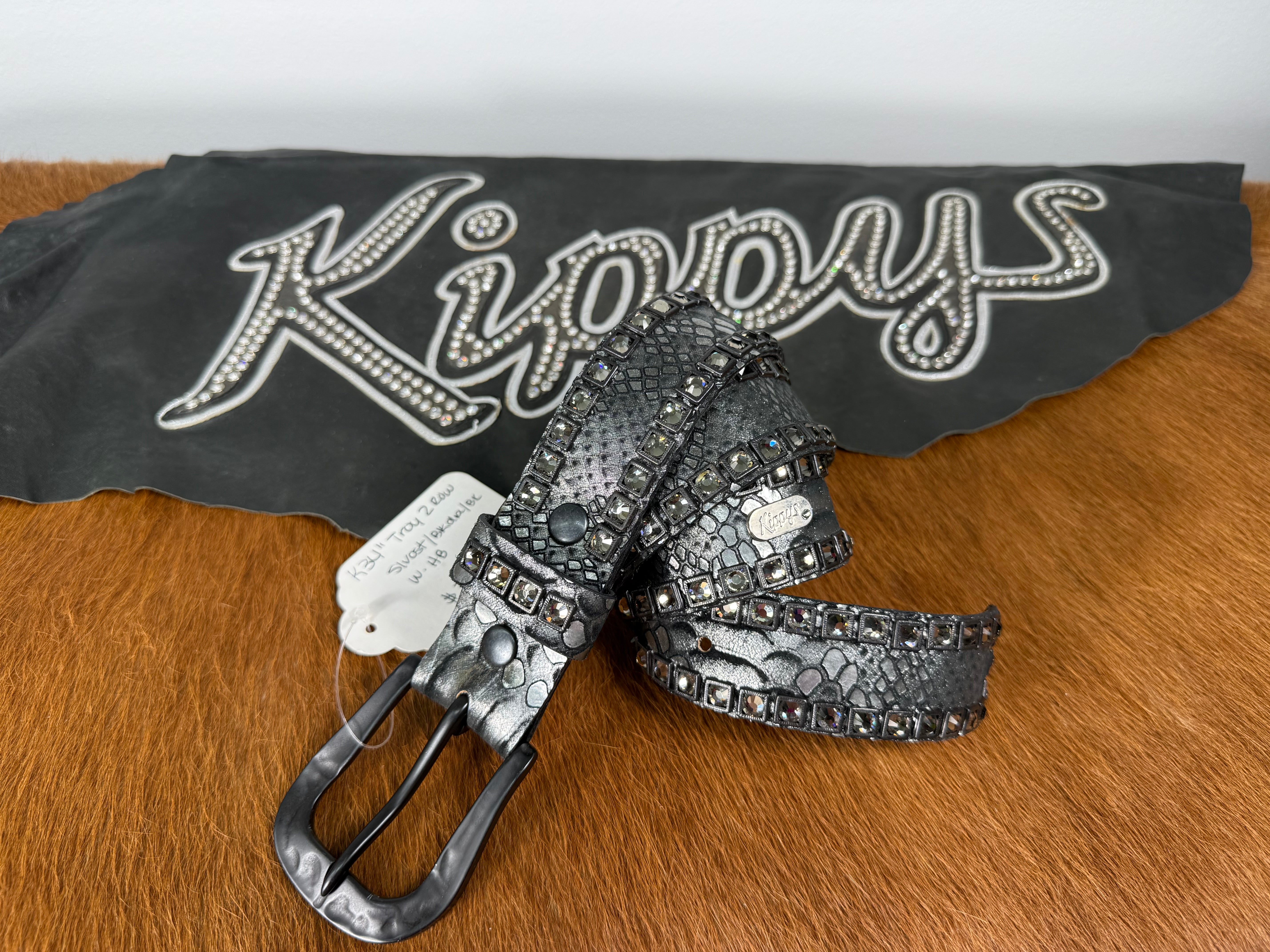 Kippy Belt - Troy Design:silver ost leather/blkdia/gmg 34 K