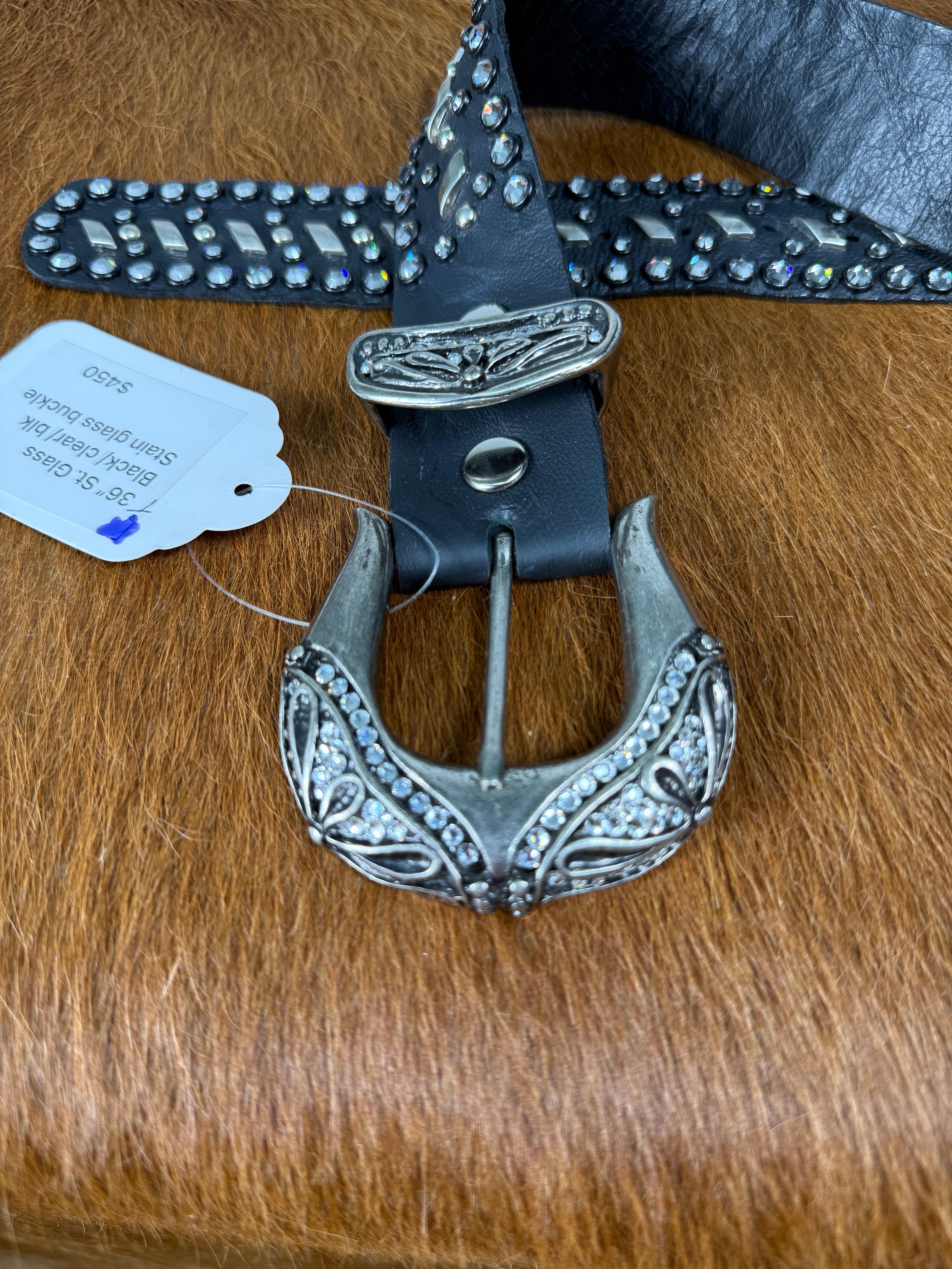 Daring Kippy-like belt featuring dazzling Swarovski crystals and a striking stained glass buckle. The black, clear, and silver tones blend...