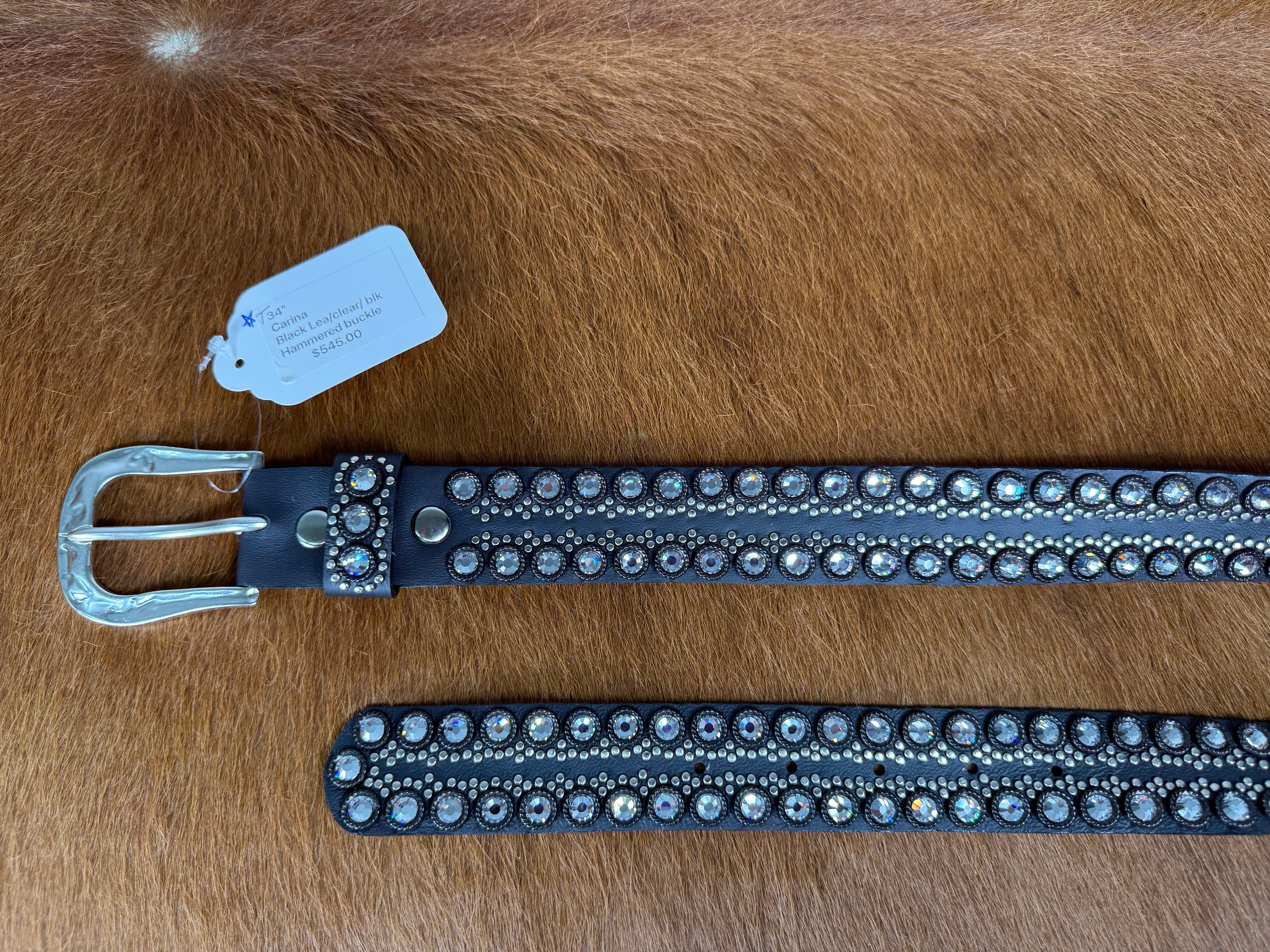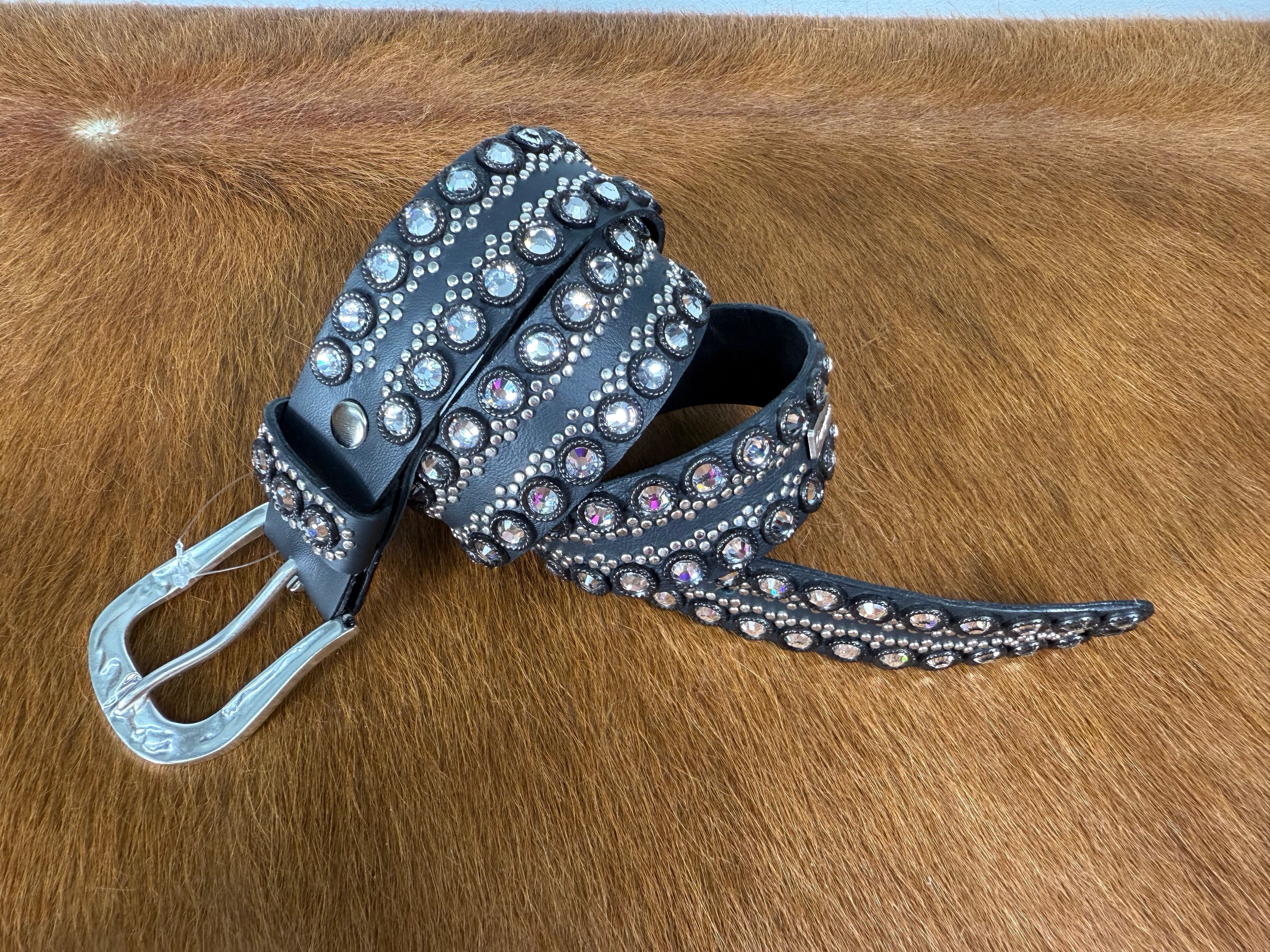 WOW!! New Design 34" T means true to size from the fold to the middle hole Black leather/clear crystals/black and...