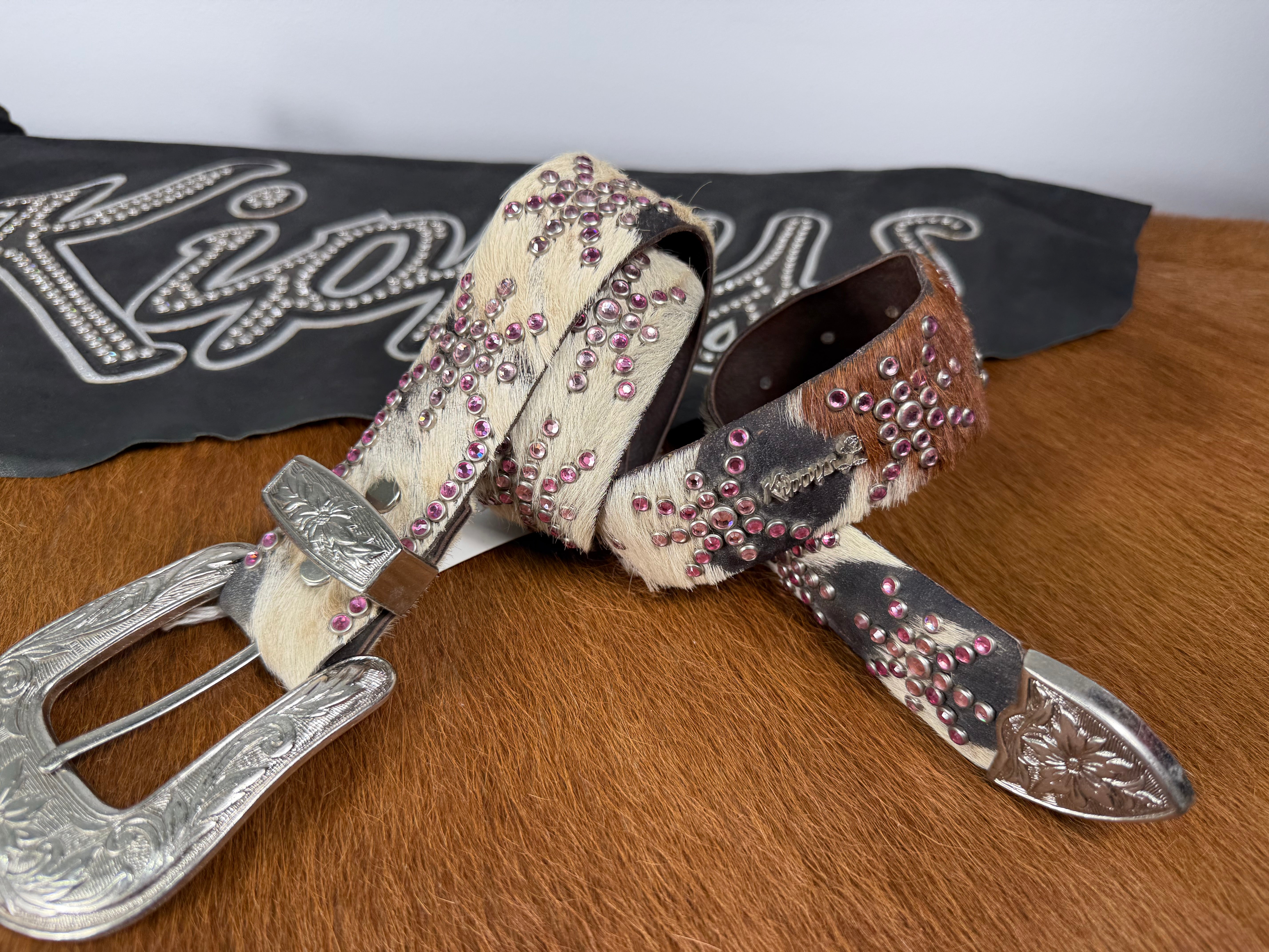 Kippy Belt-Snowflake Design: cowhide, lite rose/ rose / silver 34K