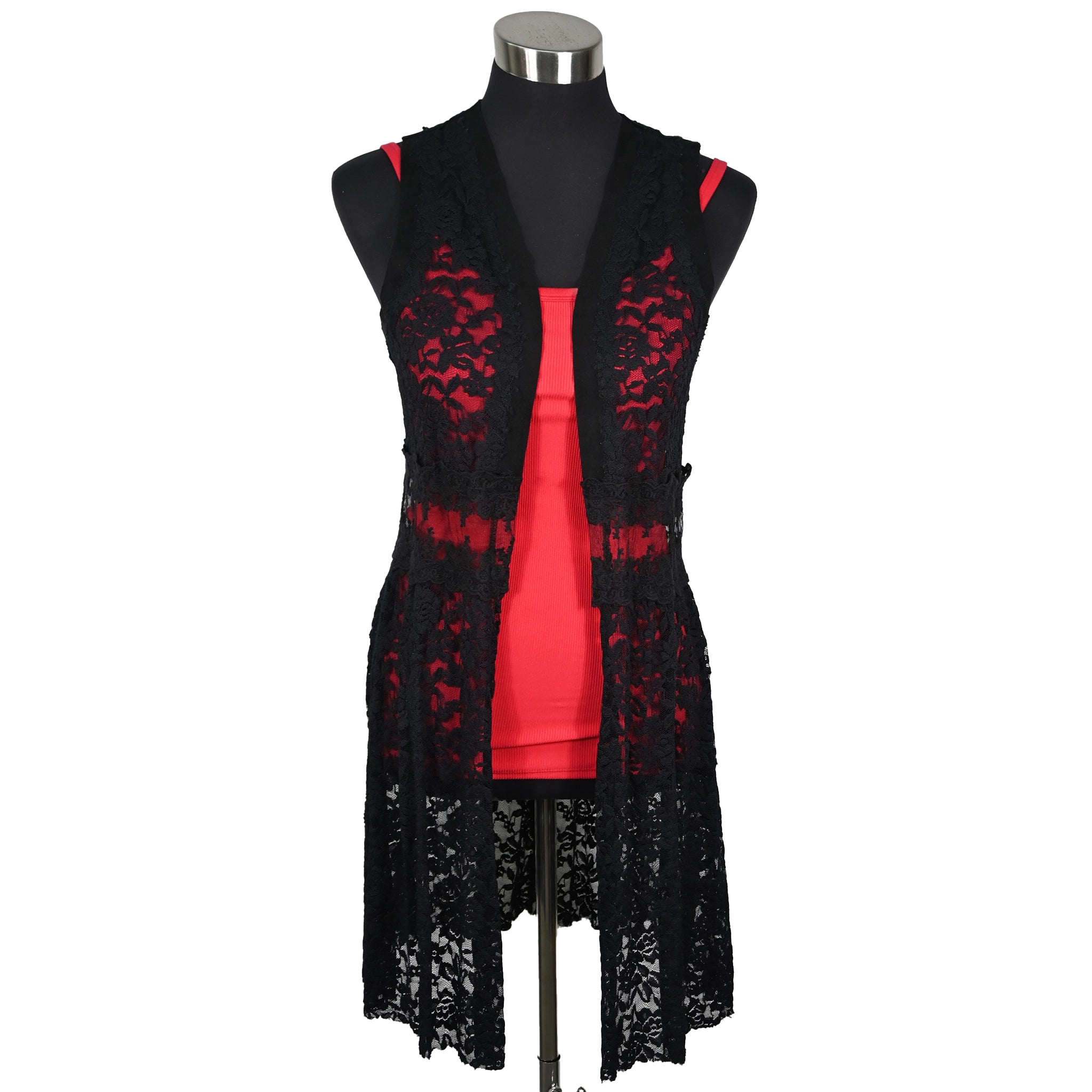 This elegant long black vest features an intricate lace design that adds a touch of sophistication and texture. With its...