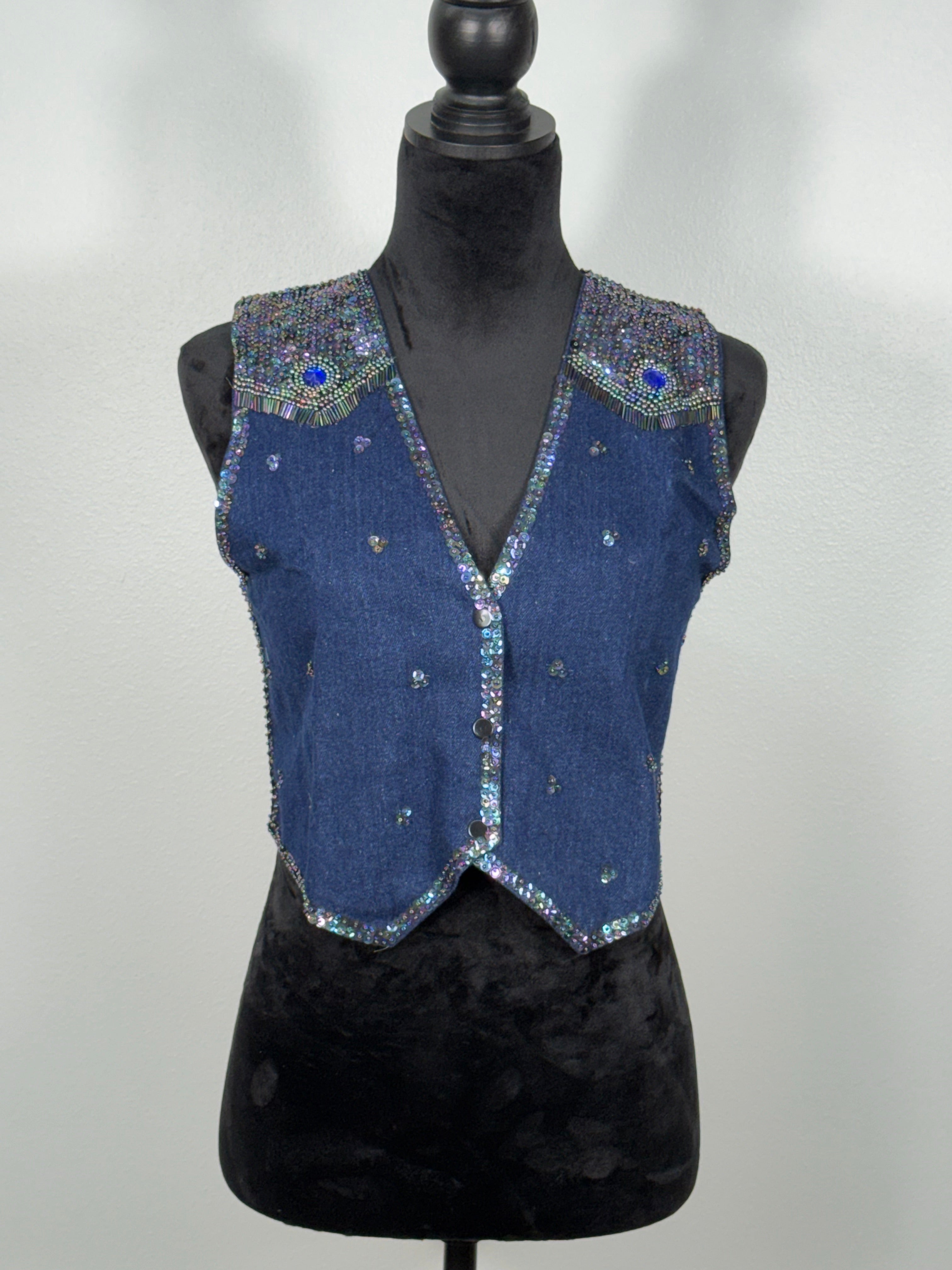 Sequin vests: Blue Denim