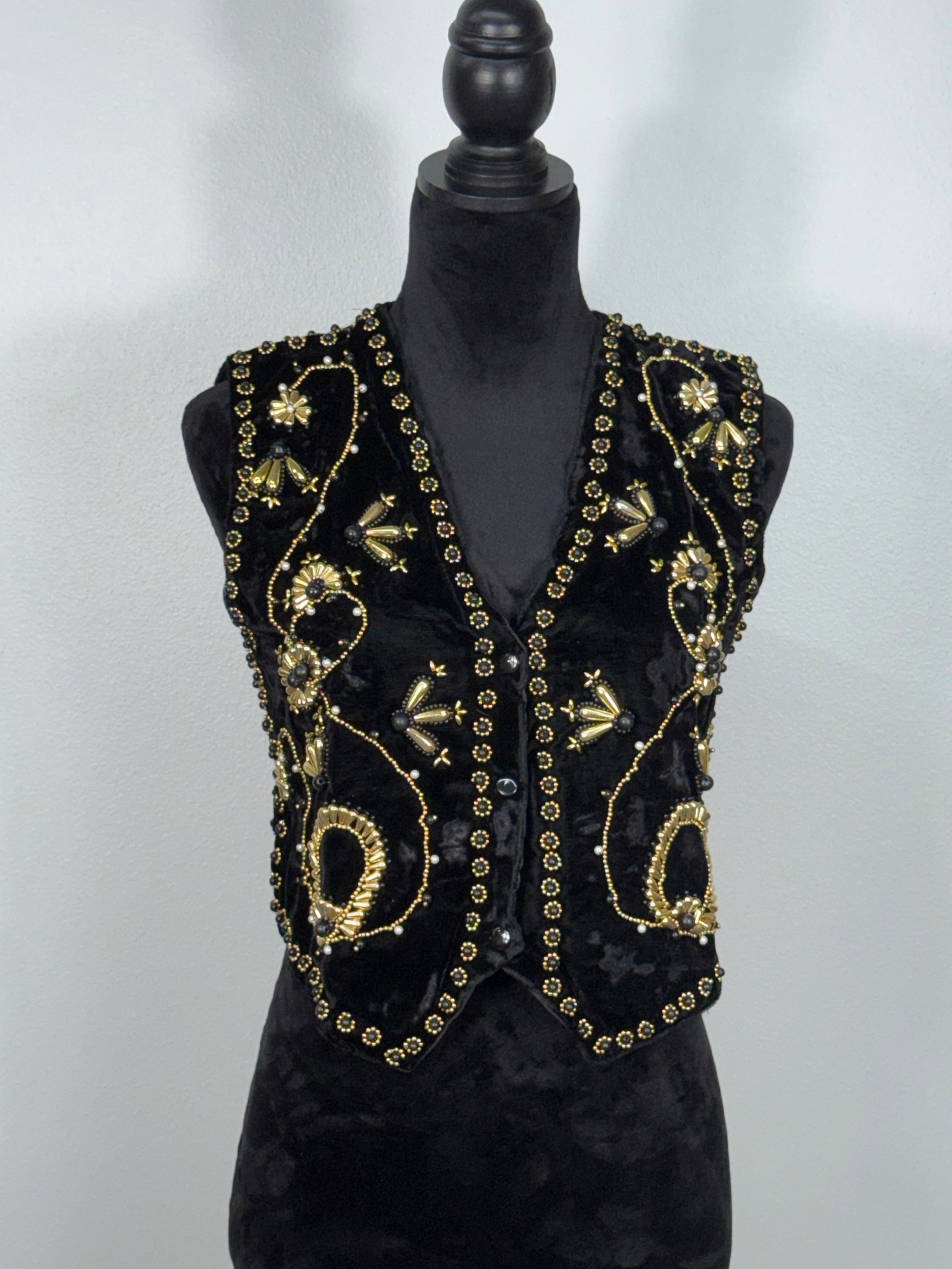Sequin vests are made in Indonesia by placing each sequin and seed bead on by a needle and thread. Handmade....