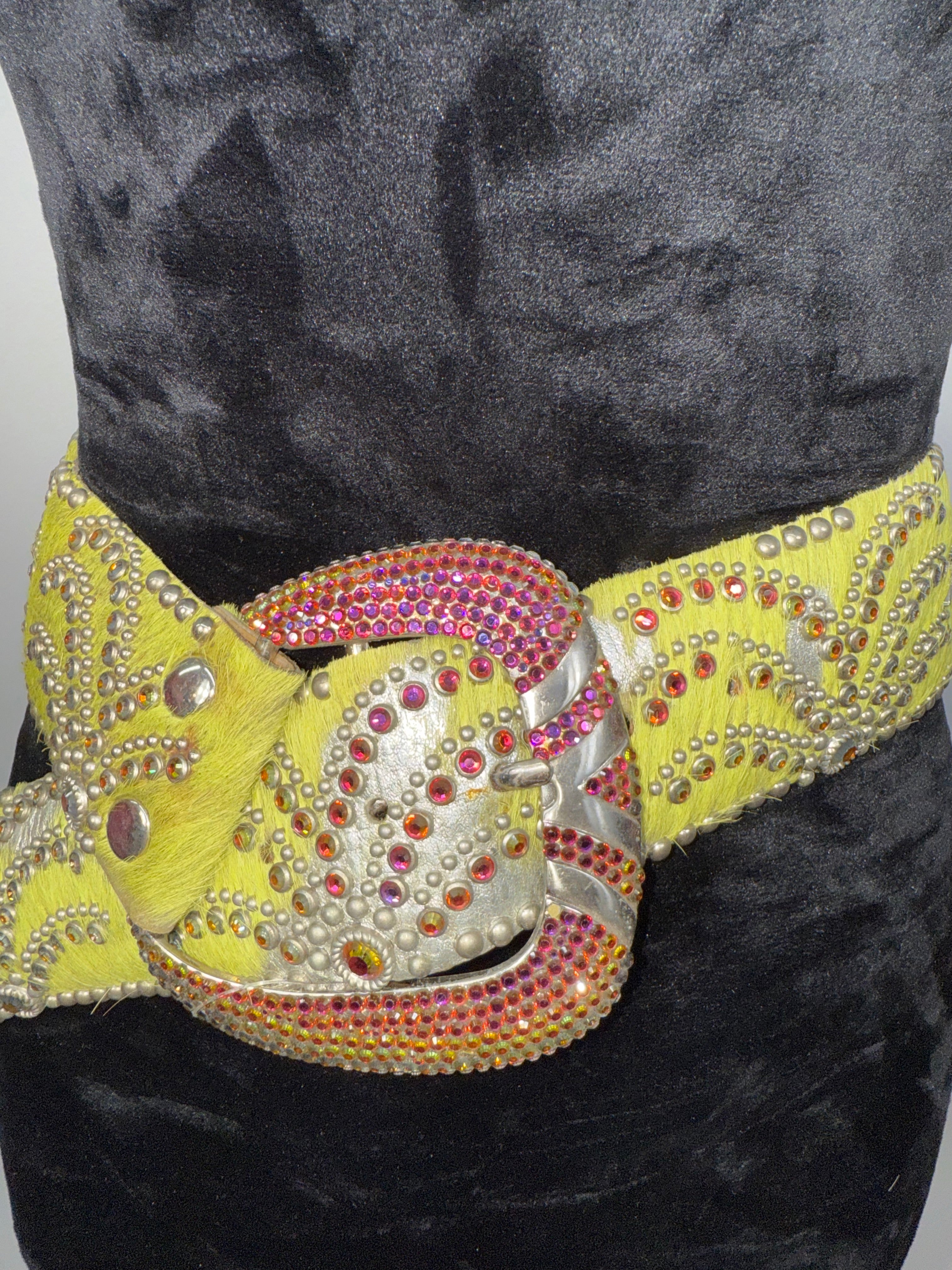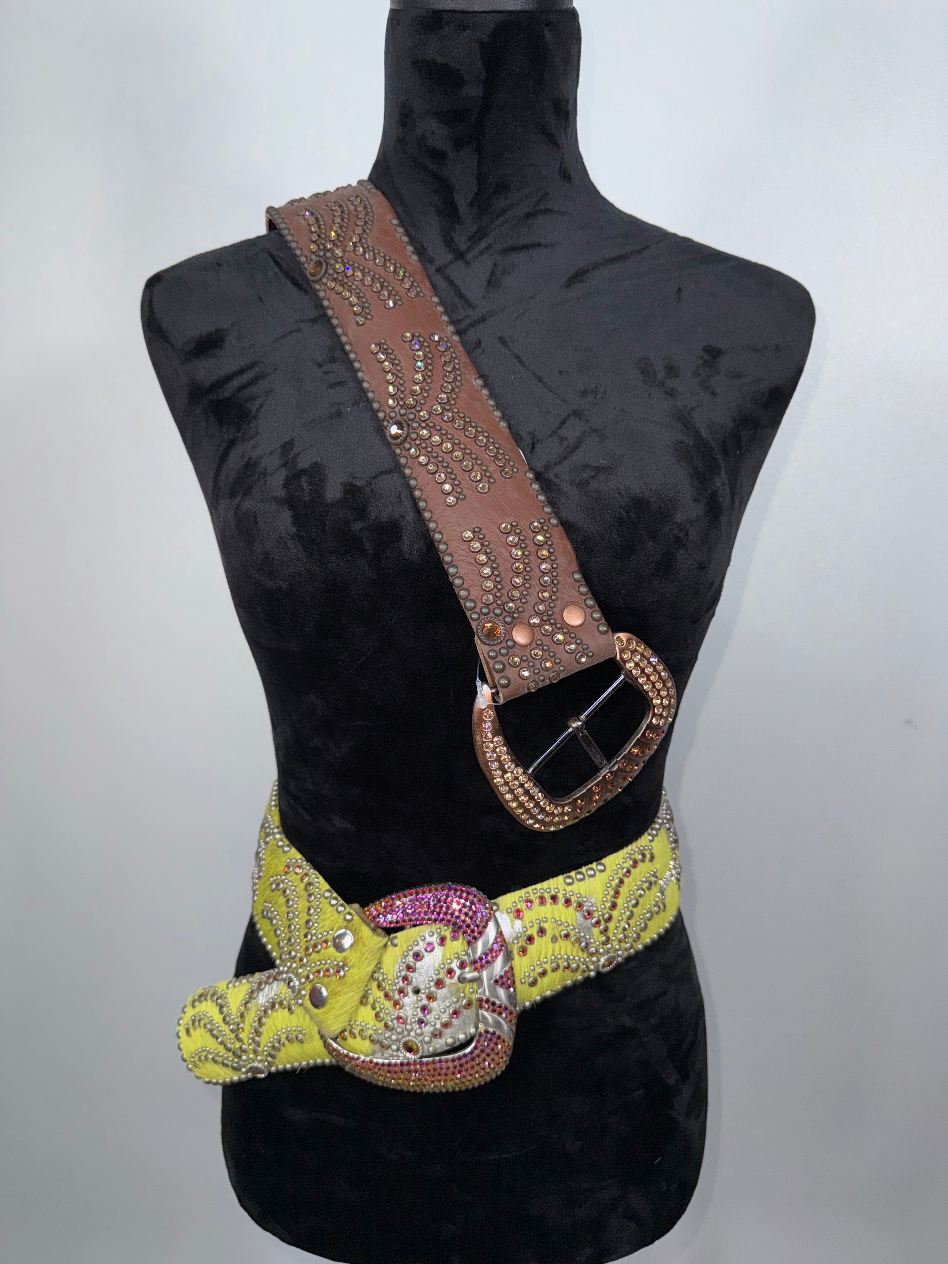 Brown leather/ lite colorado/smtz tpz, bronze rimsets with a bronze point back buckle Size 32" K Lime green...