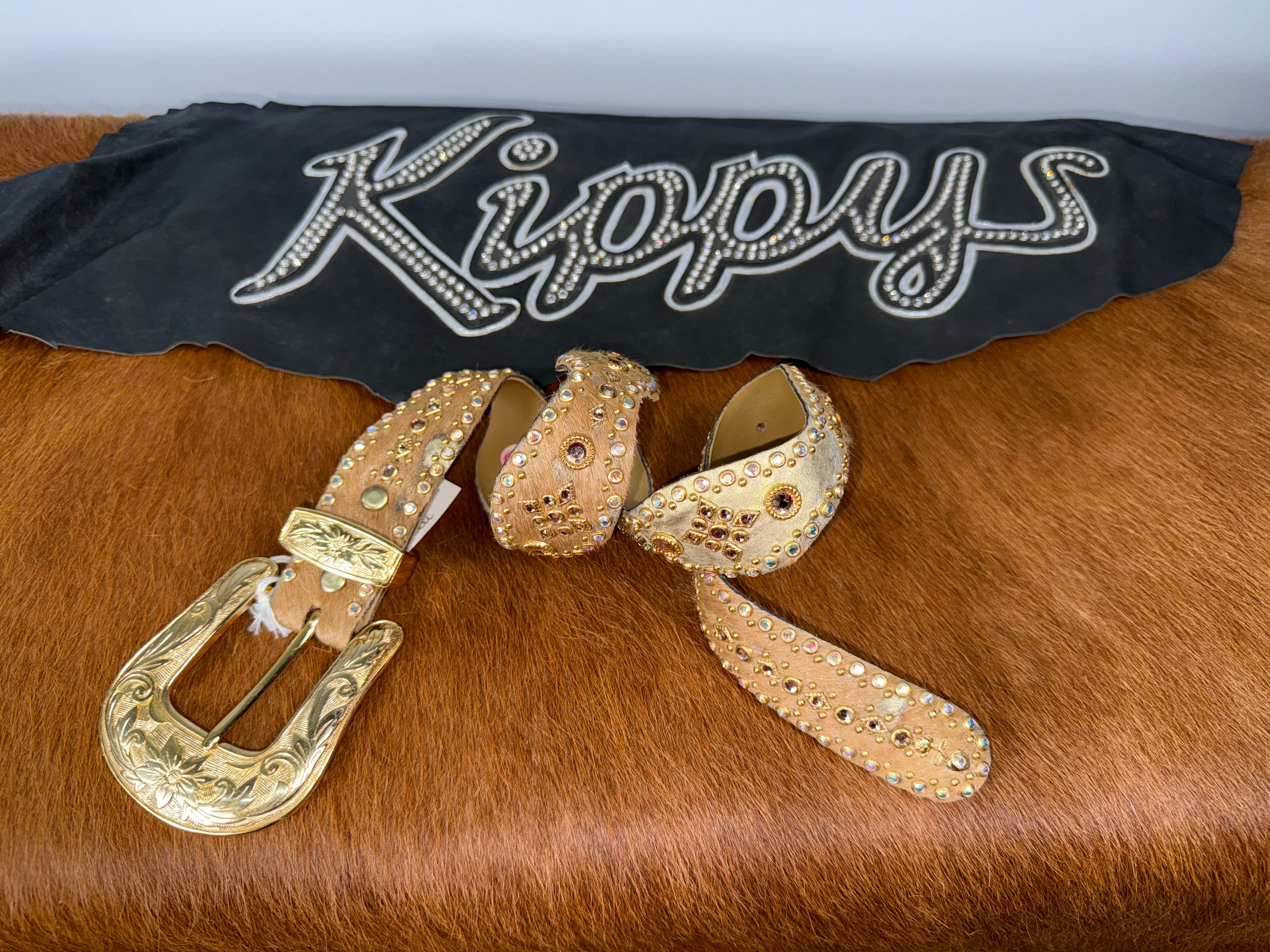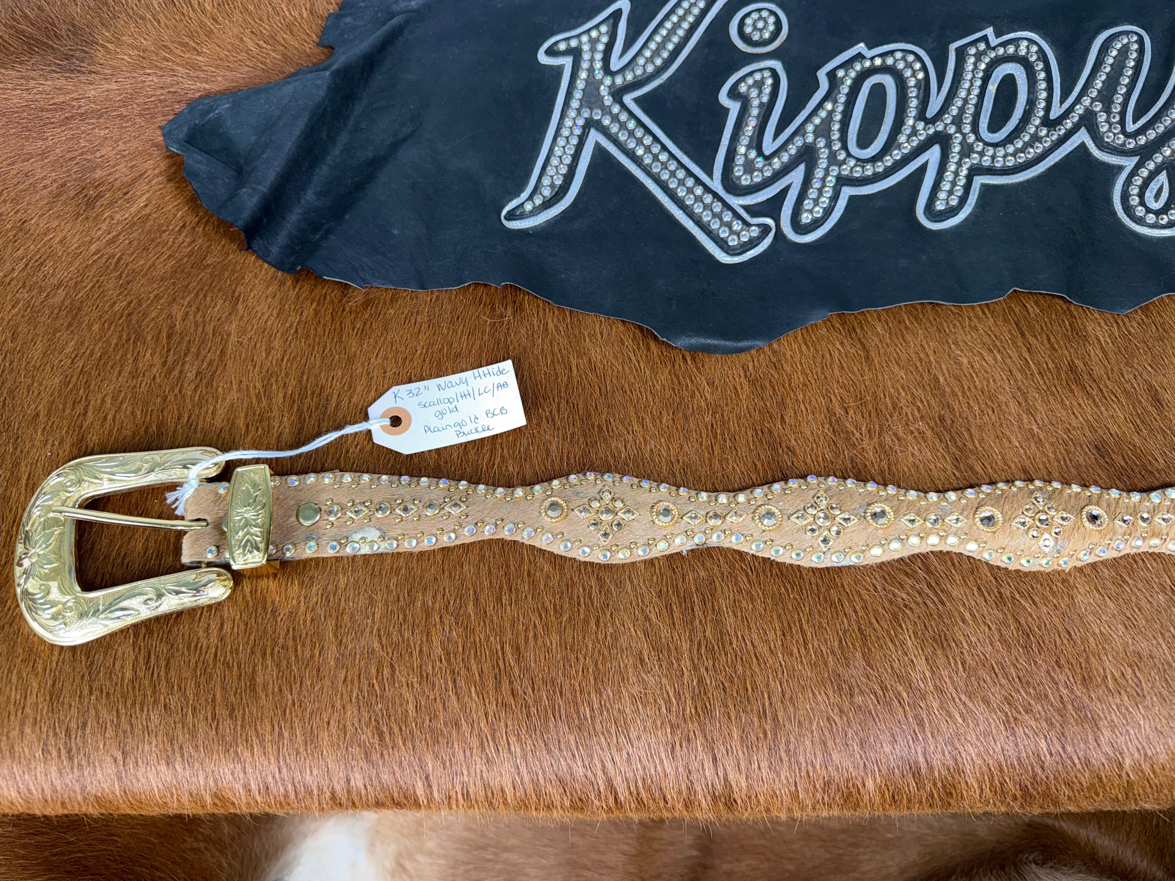 Crafted from premium gold acid-wash hair hide, the Kippy Wavy design in size K 32 showcases a refined vintage sparkling...