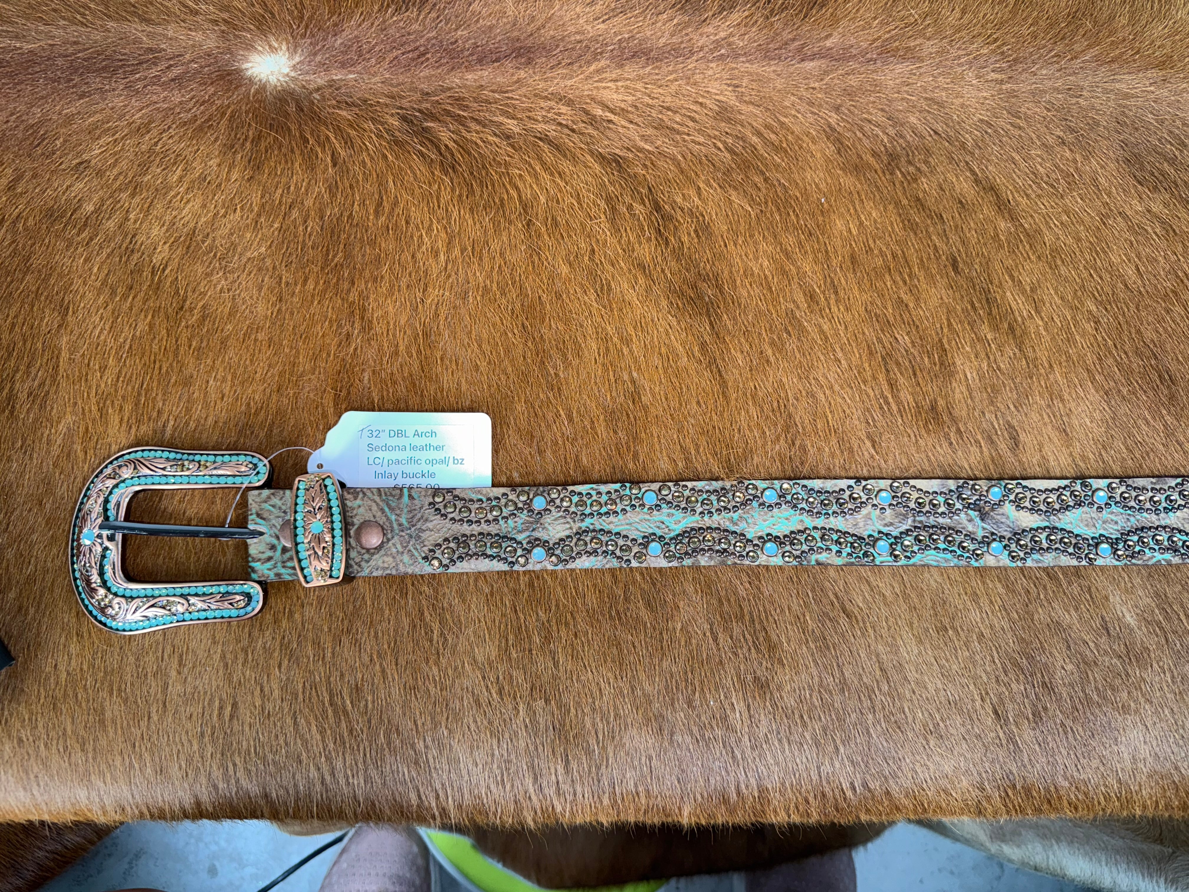 Elevate your style with the Arch Design Belt, featuring a stunning blend of turquoise and brown Sedona leather. This piece...
